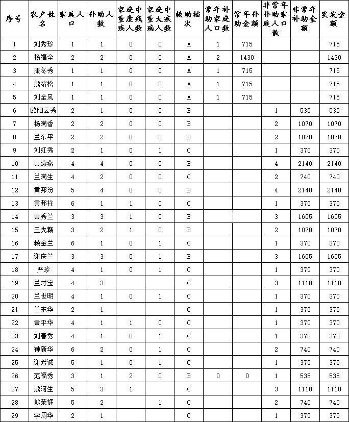 【社會救助】瀲江鎮筲箕村2025年6月份農村低保名單公示