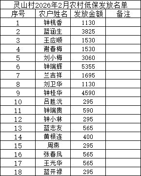 靈山村2026年2月低保名單公示