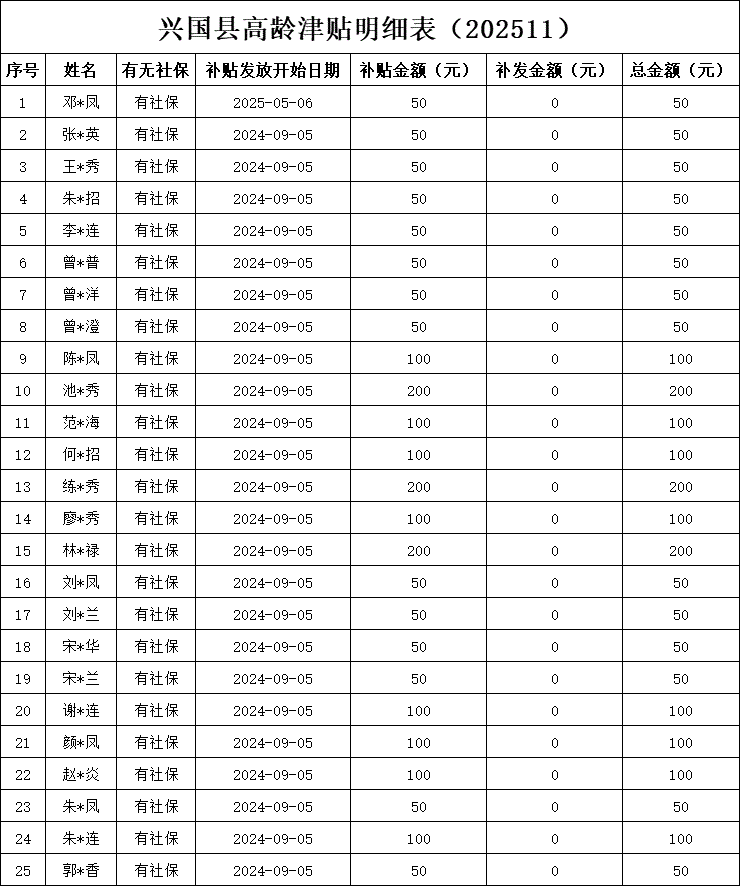 咸潭村2025年11月高齡現存明細表