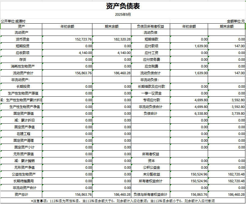 咸潭村9月份資產負債表