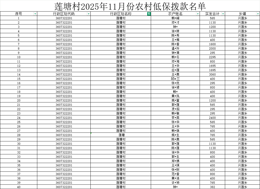 【社會救助】蓮塘村2025年11月份農村低保公示