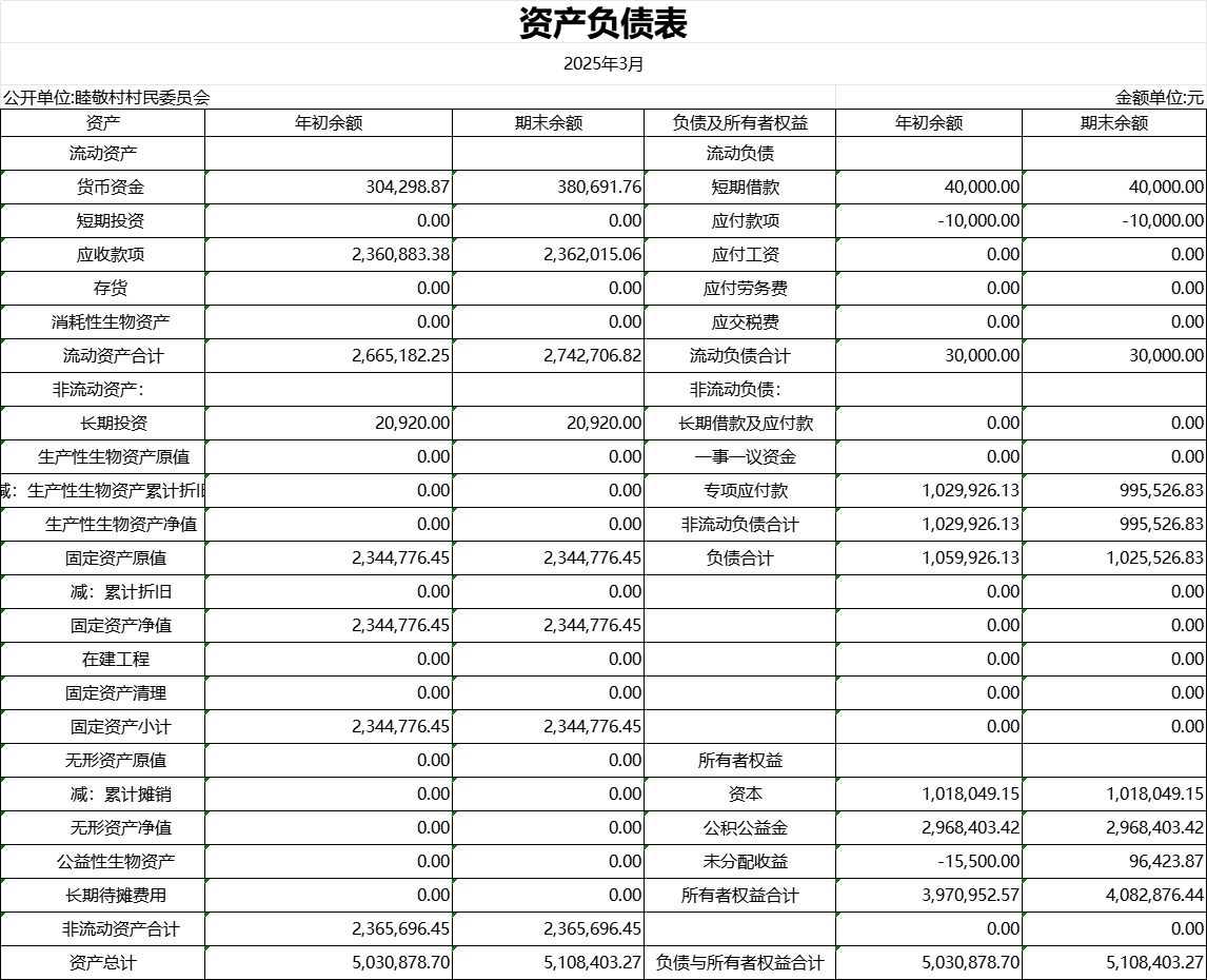 睦敬村2025年3月份資產(chǎn)負(fù)債表公示
