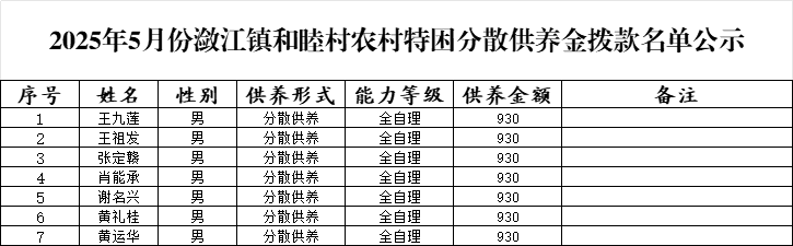【養(yǎng)老服務(wù)】瀲江鎮(zhèn)和睦2025年5月份農(nóng)村特困分散供養(yǎng)金撥款名單