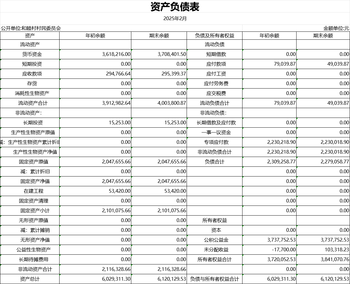 和睦村2025年2月資產負債表公示