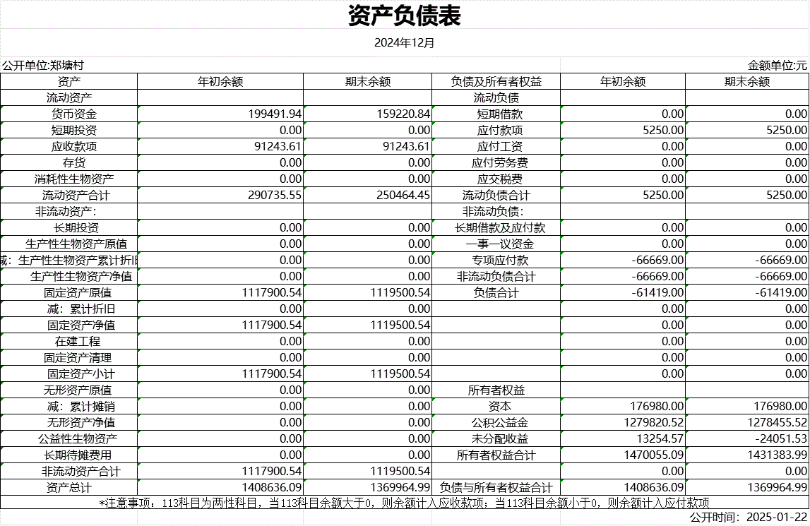 【財務(wù)收支】鄭塘村2024年第四季度資產(chǎn)負(fù)債表公示