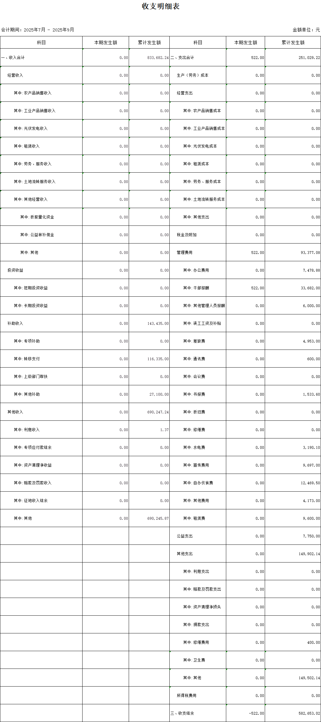 【財務收支】鄭塘村2025年第三季度收支明細表公示