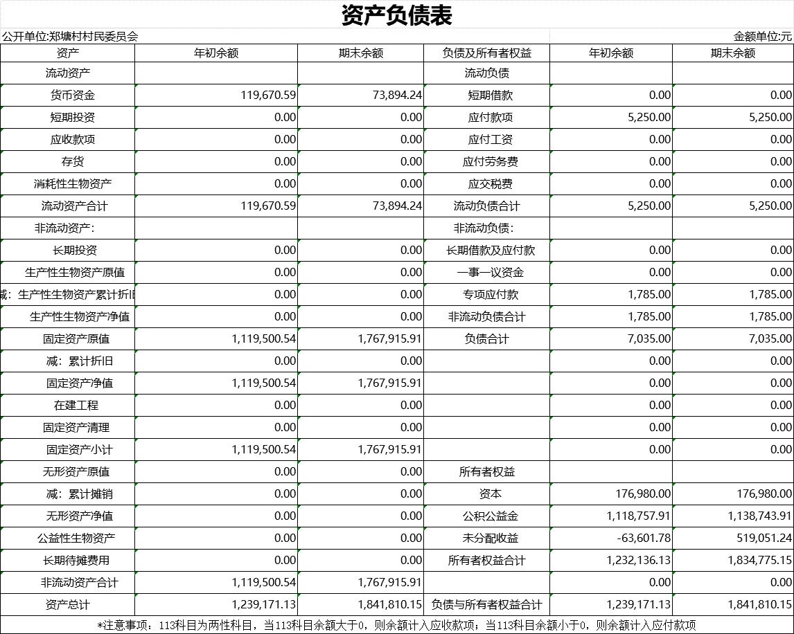 【財務收支】鄭塘村2025年第三季度資產負債表公示