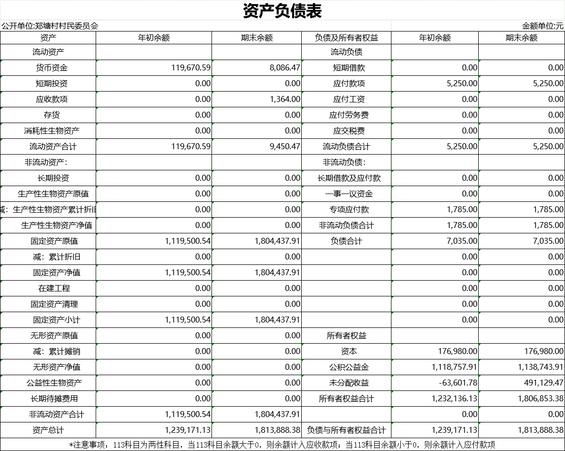 【財務收支】鄭塘村2025年第四季度資產負債表公示