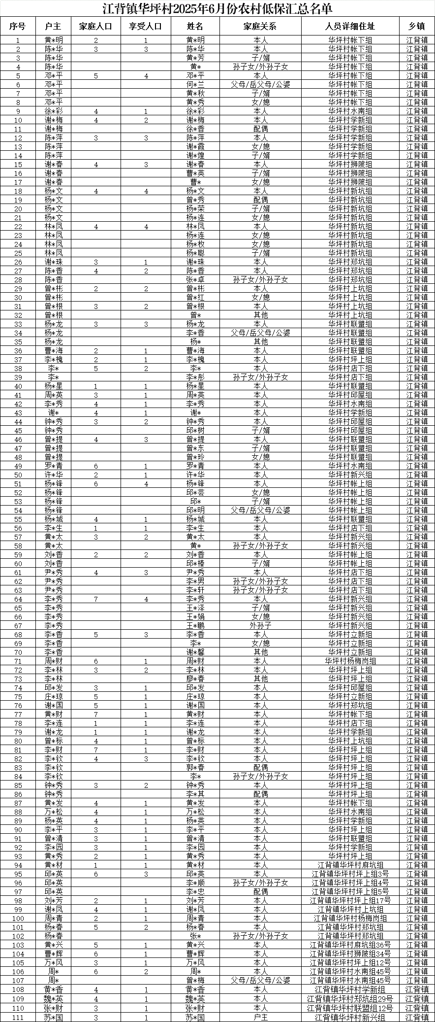 【社會(huì)救助】江背鎮(zhèn)華坪村2025年6月份農(nóng)村低保匯總名單