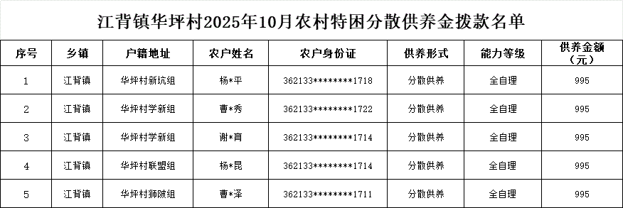 【社會救助】江背鎮華坪村2025年10月農村特困分散供養金撥款名單