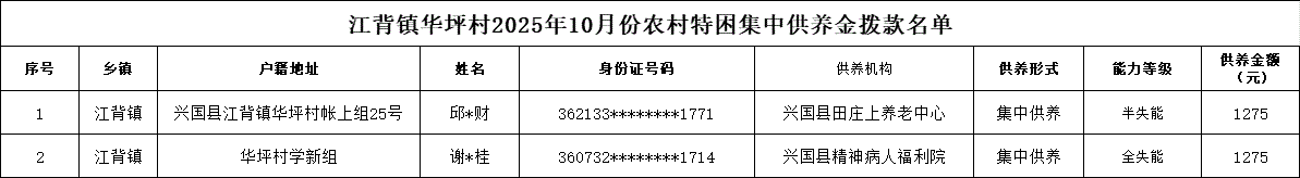 【社會(huì)救助】江背鎮(zhèn)華坪村2025年10月份農(nóng)村特困集中供養(yǎng)金撥款名單
