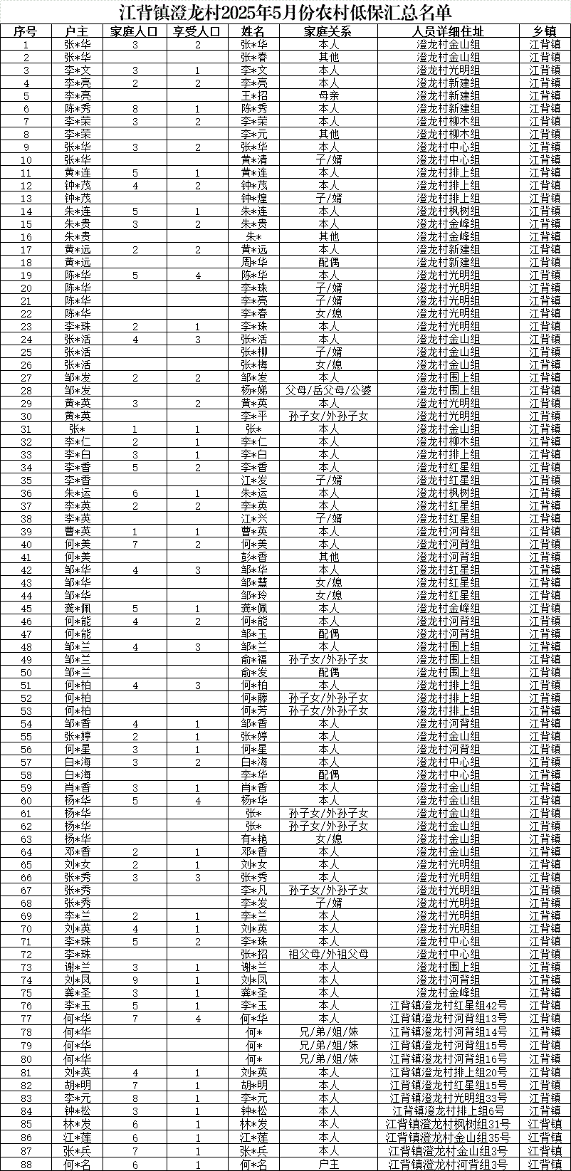 【社會救助】江背鎮澄龍村2025年5月份農村低保匯總名單