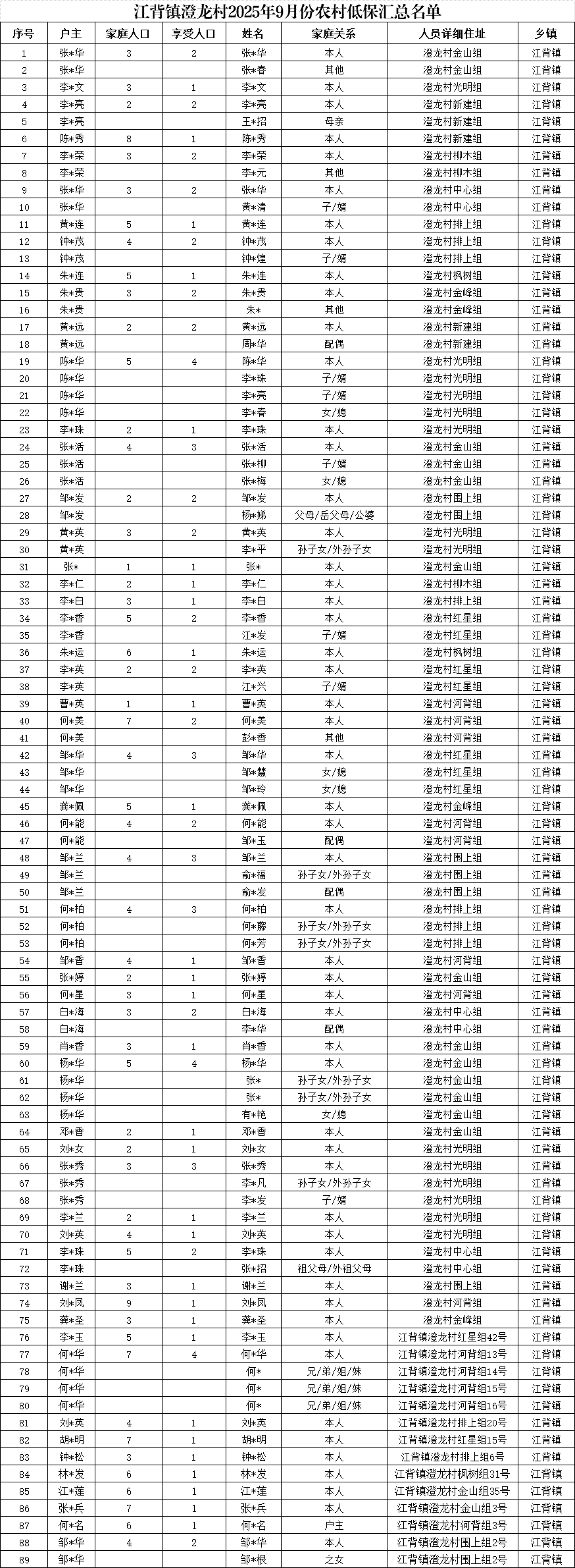 【社會救助】江背鎮(zhèn)澄龍村2025年9月份農(nóng)村低保匯總名單