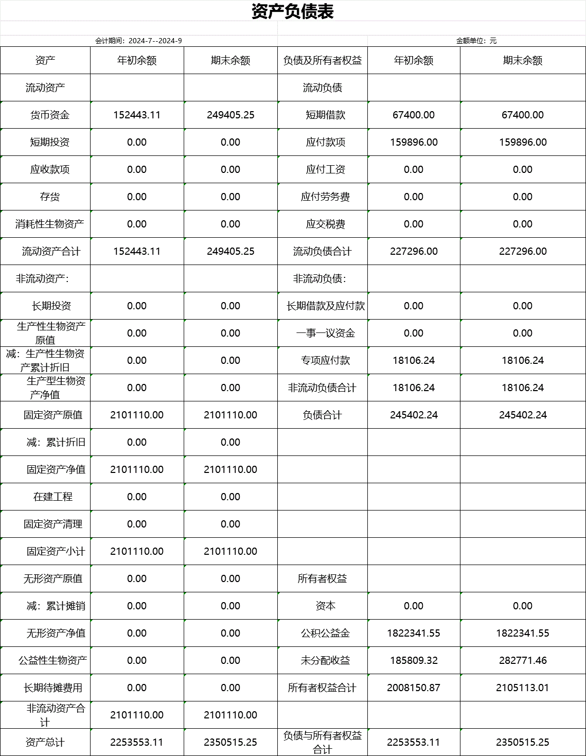 【財務收支】澄龍村2024年第三季度資產負債表公示