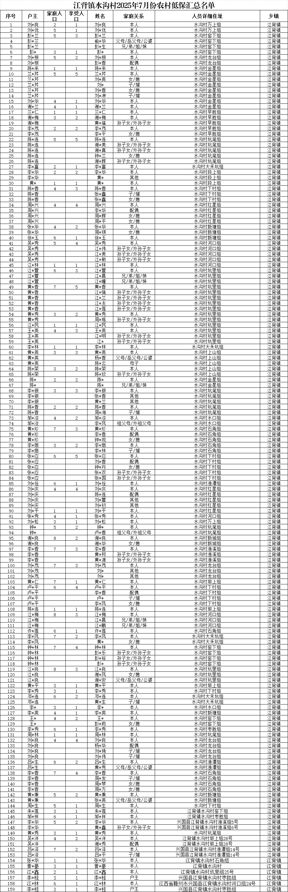 【社會救助】江背鎮水溝村2025年7月份農村低保匯總名單