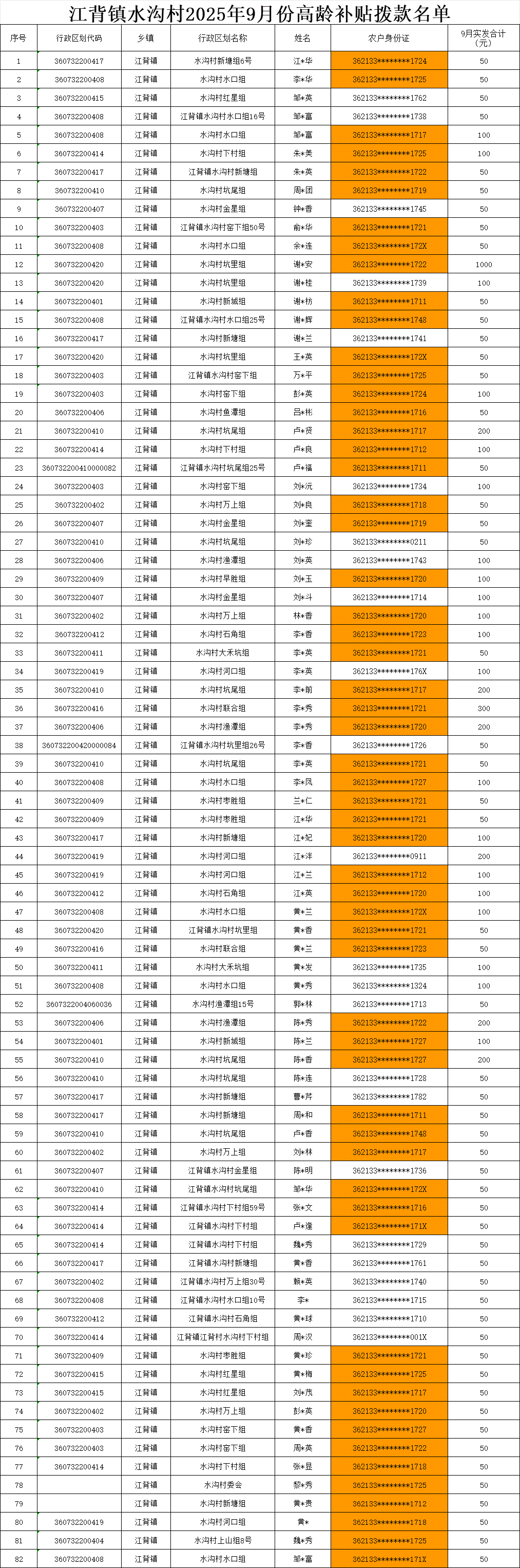 【養(yǎng)老服務(wù)】江背鎮(zhèn)水溝村2025年9月份高齡補(bǔ)貼撥款名單