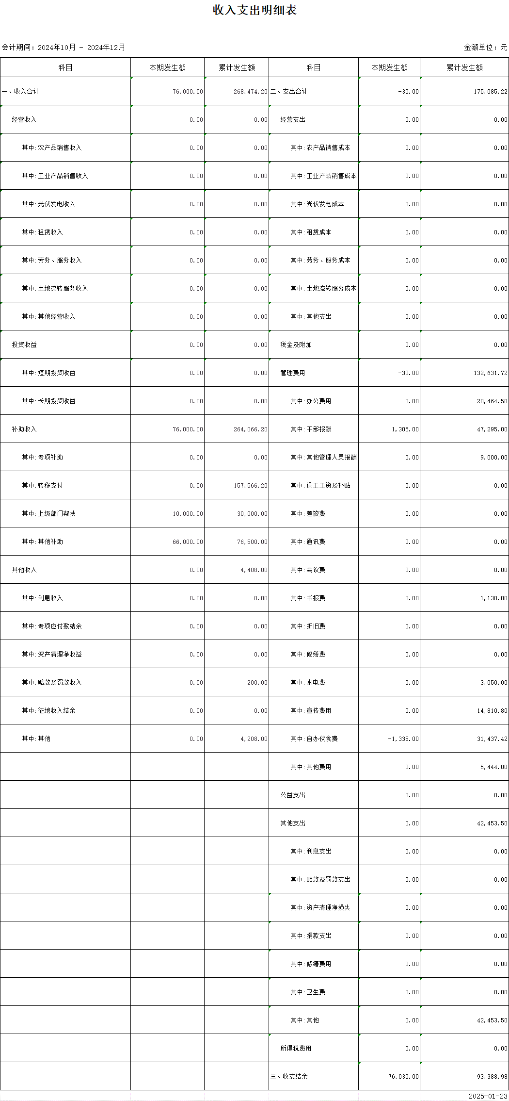 【財務收支】水溝村2024年第四季度收支明細表公示