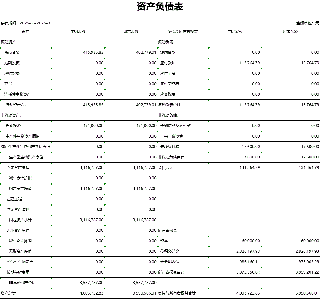 【財務收支】水溝村2025年第一季度資產負債表公示