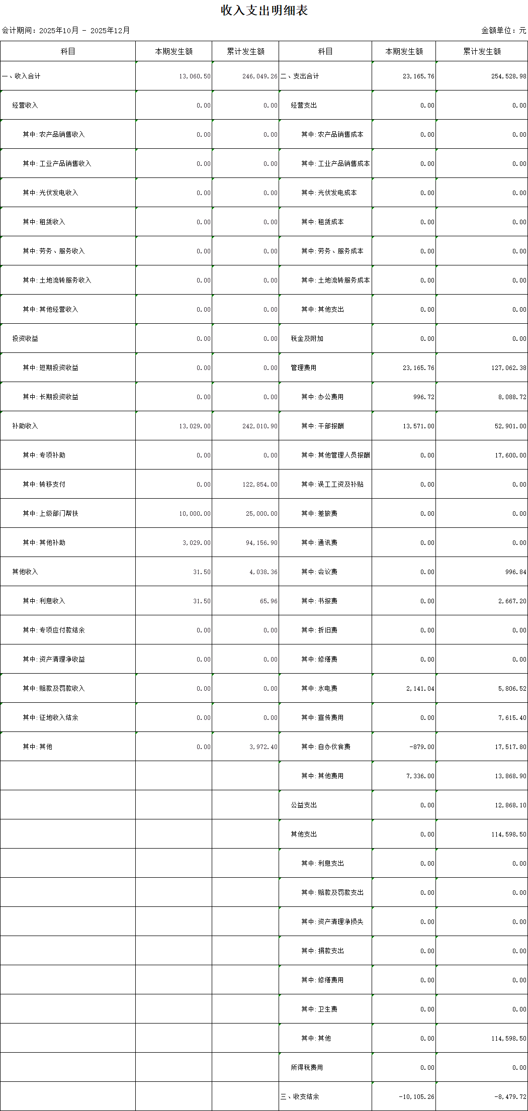 【財(cái)務(wù)收支】水溝村2025年第四季度收支明細(xì)表公示