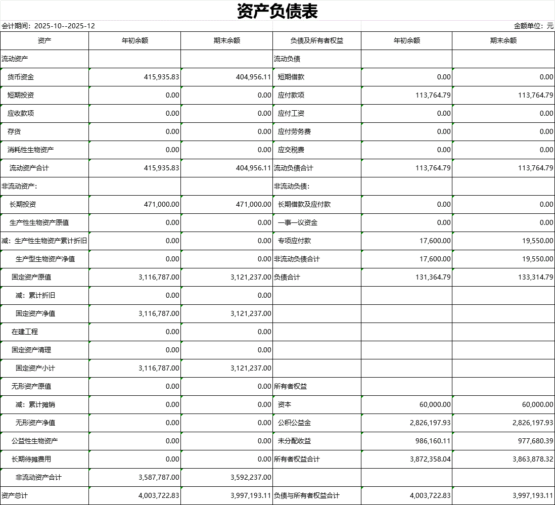 【財務收支】水溝村2025年第四季度資產負債表公示