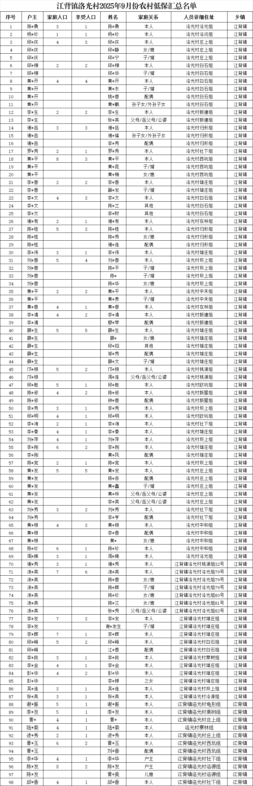 【社會救助】江背鎮洛光村2025年9月份農村低保匯總名單