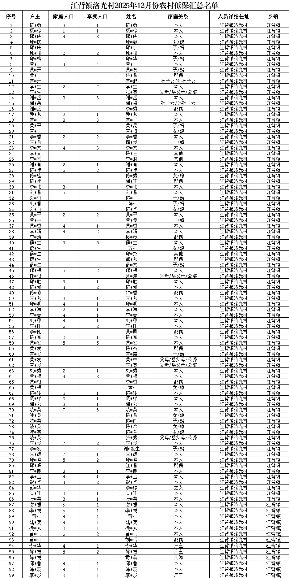 【社會救助】江背鎮(zhèn)洛光村2025年12月份農村低保匯總名單