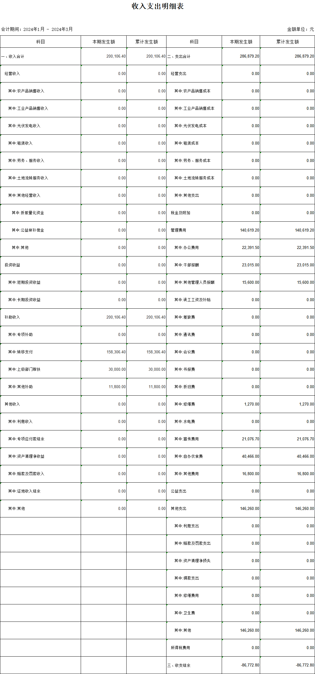 【財(cái)務(wù)收支】洛光村2024年第一季度收支明細(xì)表公示