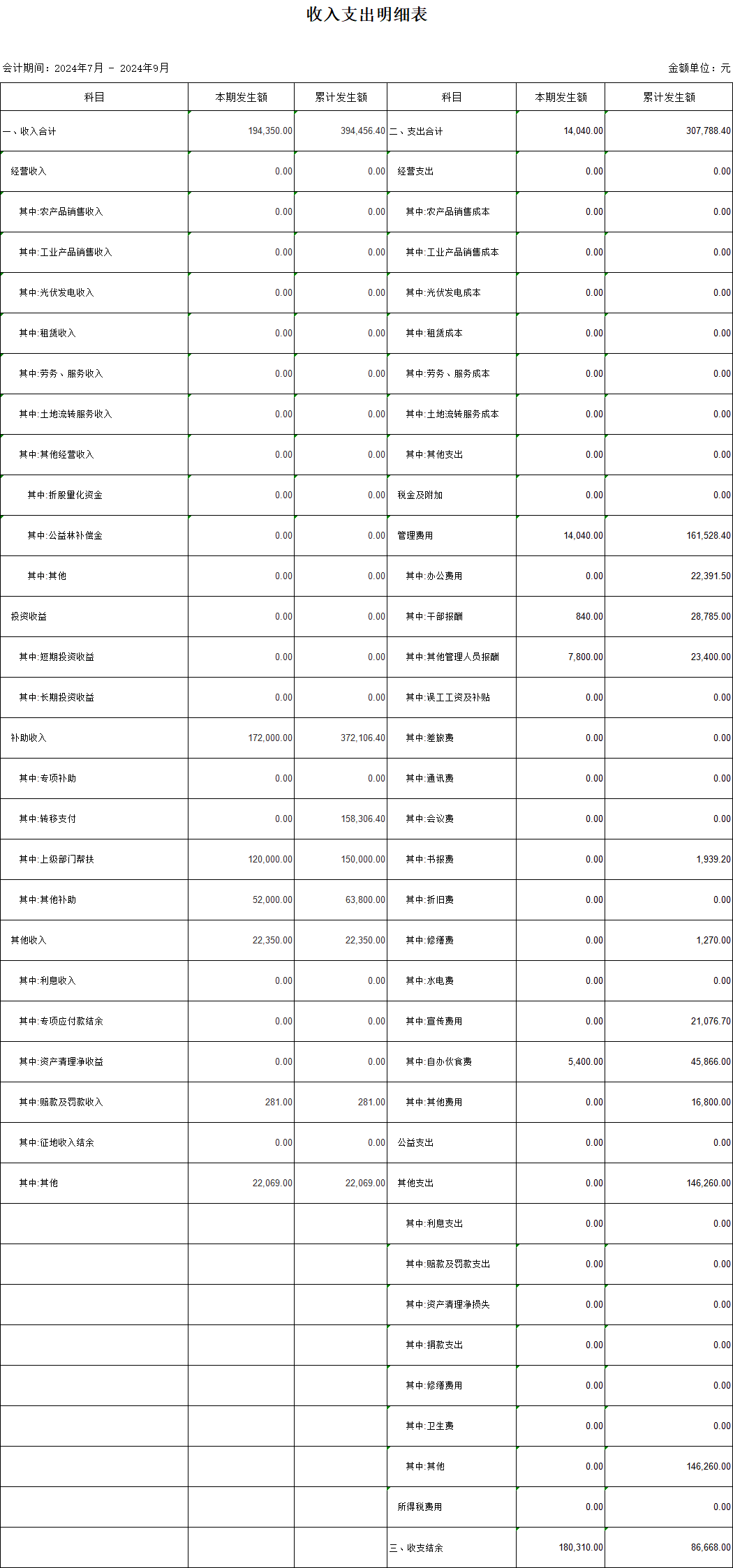 【財務收支】洛光村2024年第三季度收支明細表公示