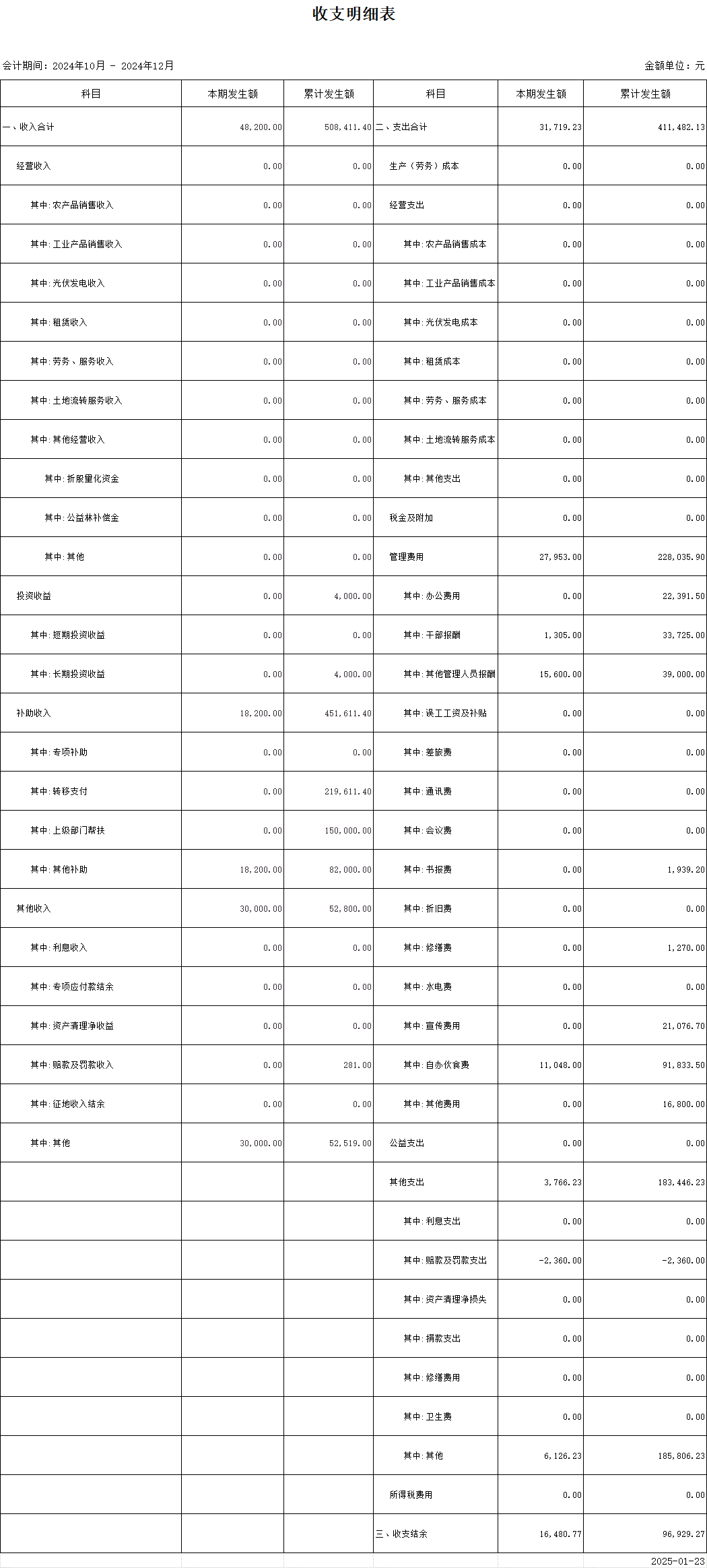 【財務(wù)收支】洛光村2024年第四季度收支明細(xì)表公示