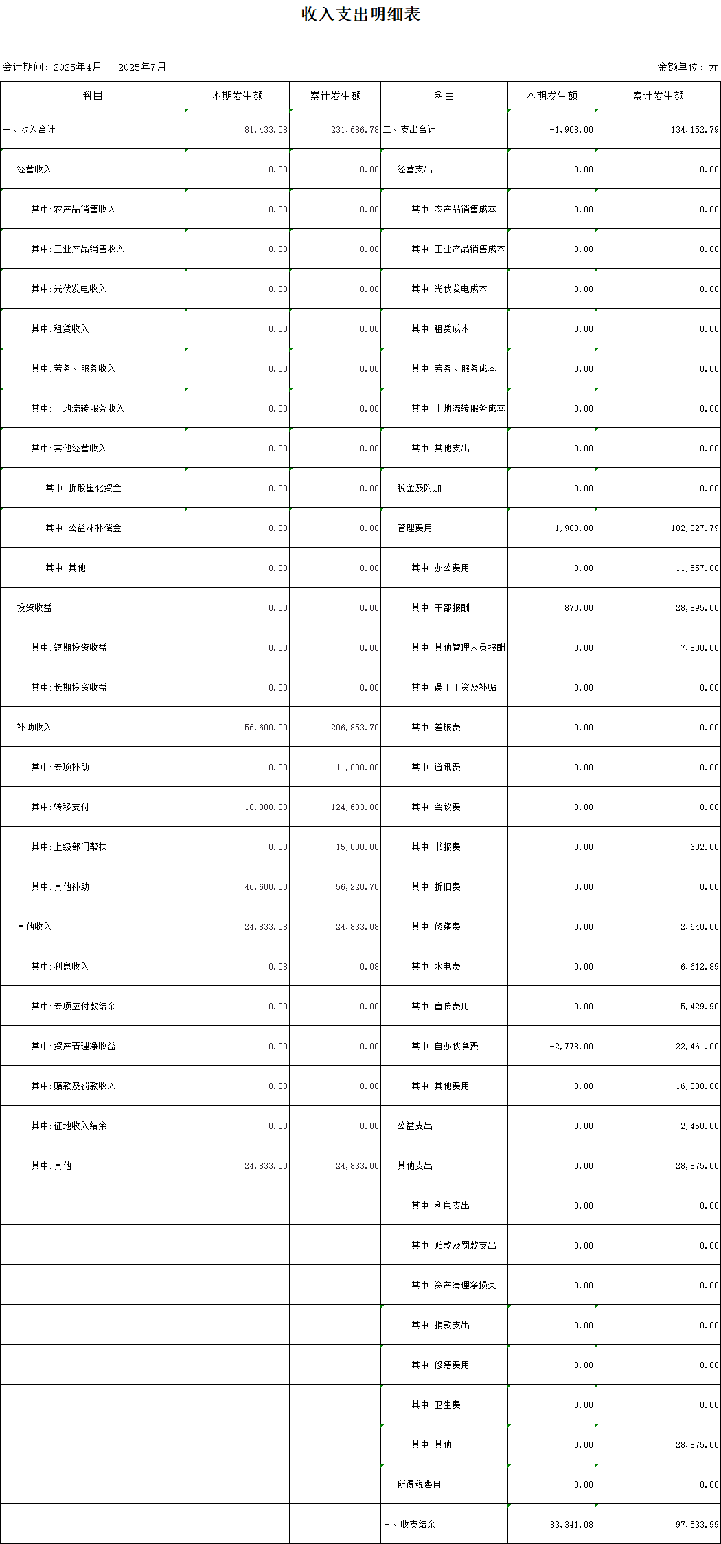 【財務收支】洛光村2025年第二季度收支明細表公示