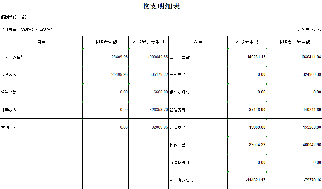 【財(cái)務(wù)收支】洛光村2025年第三季度收支明細(xì)表公示