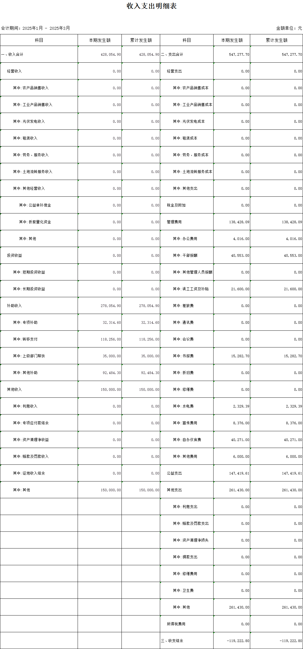 【財務收支】高寨村2025年第一季度收支明細表公示