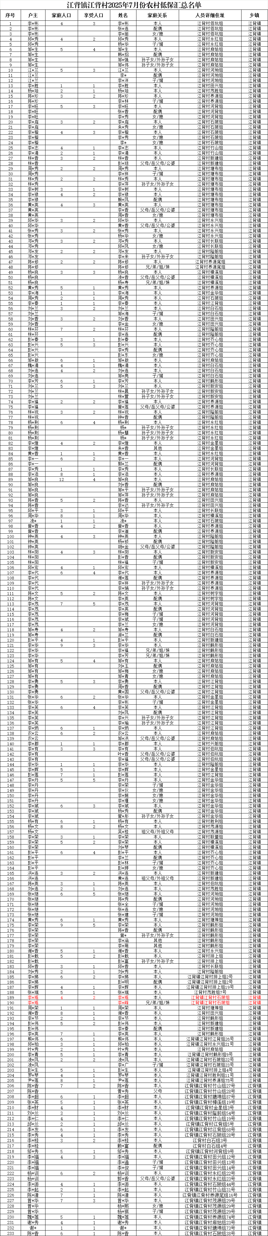 【社會救助】江背鎮江背村2025年7月份農村低保匯總名單