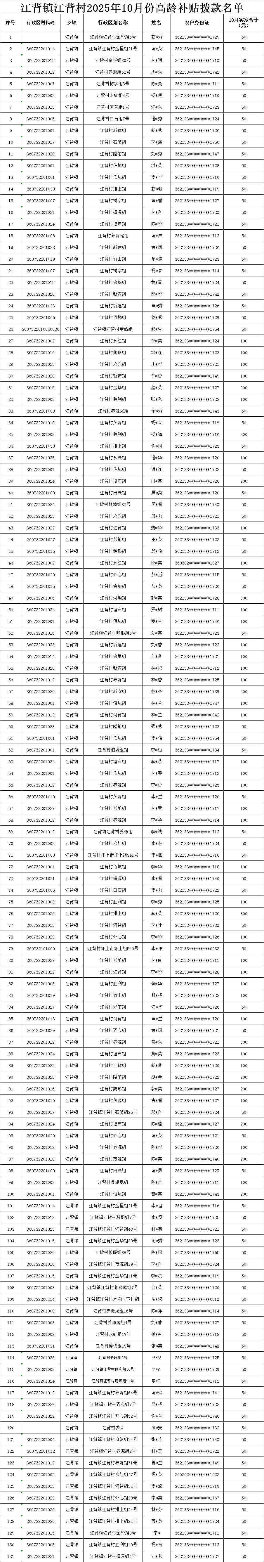 【養老服務】江背鎮江背村2025年10月份高齡補貼撥款名單