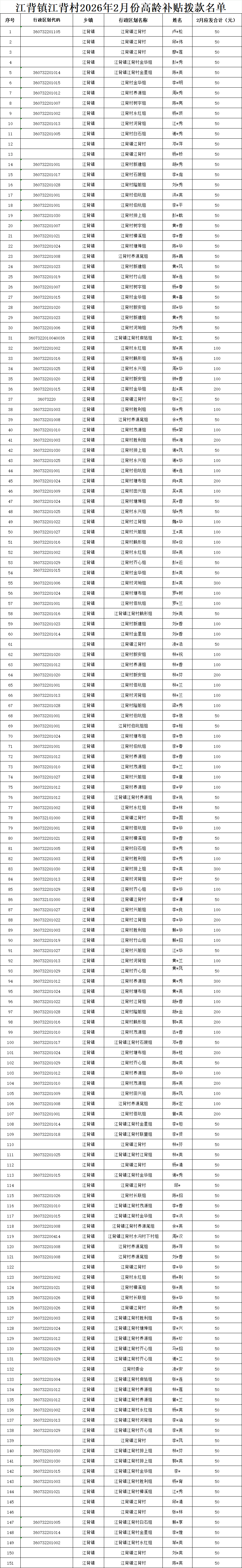 【養老服務】江背鎮江背村2026年2月份高齡補貼撥款名單