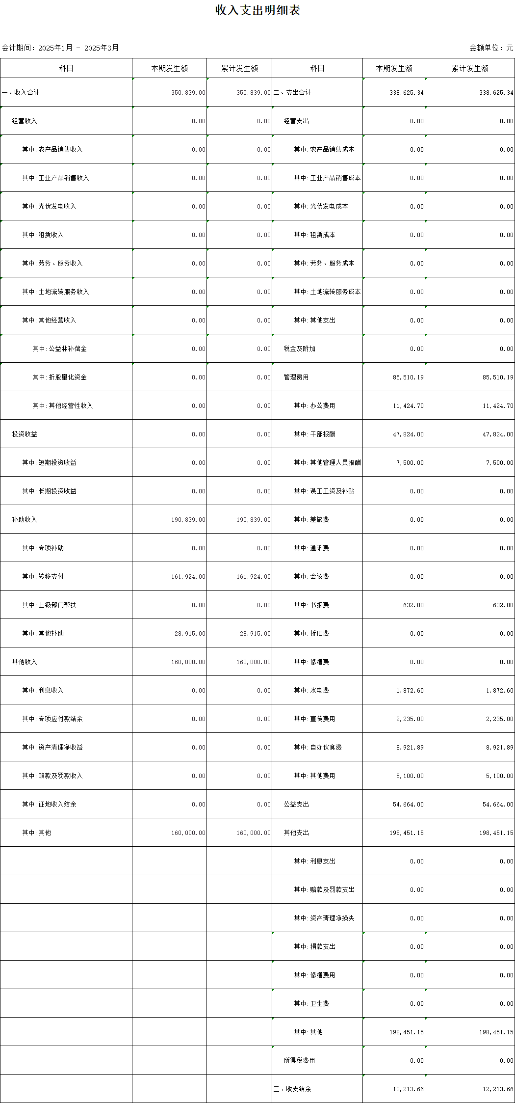 【財(cái)務(wù)收支】江背村2025年第一季度收支明細(xì)表公示