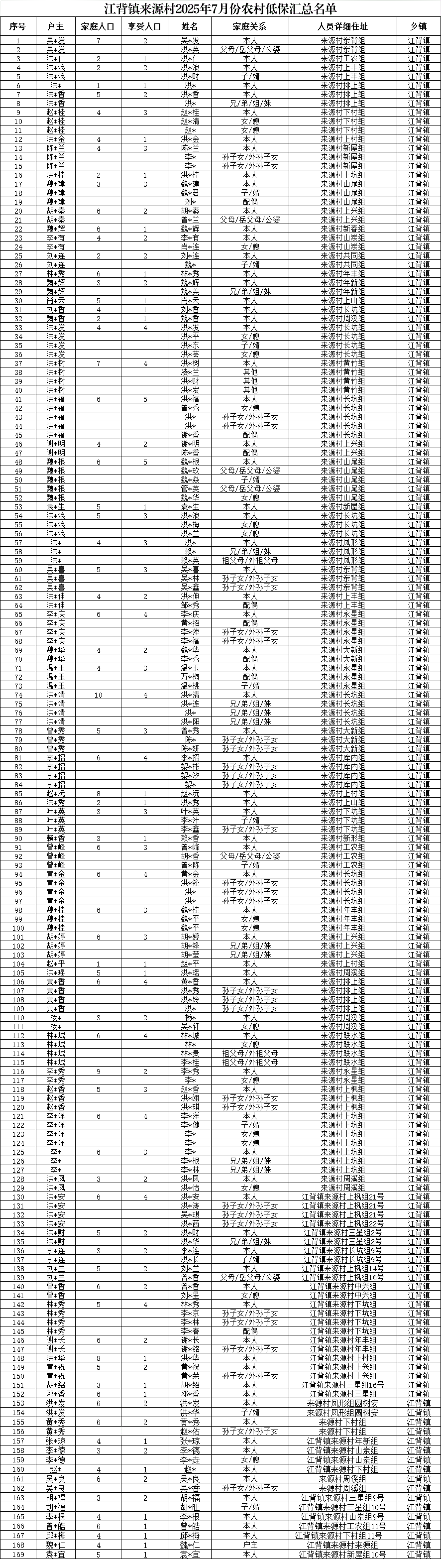 【社會救助】江背鎮來源村2025年7月份農村低保匯總名單