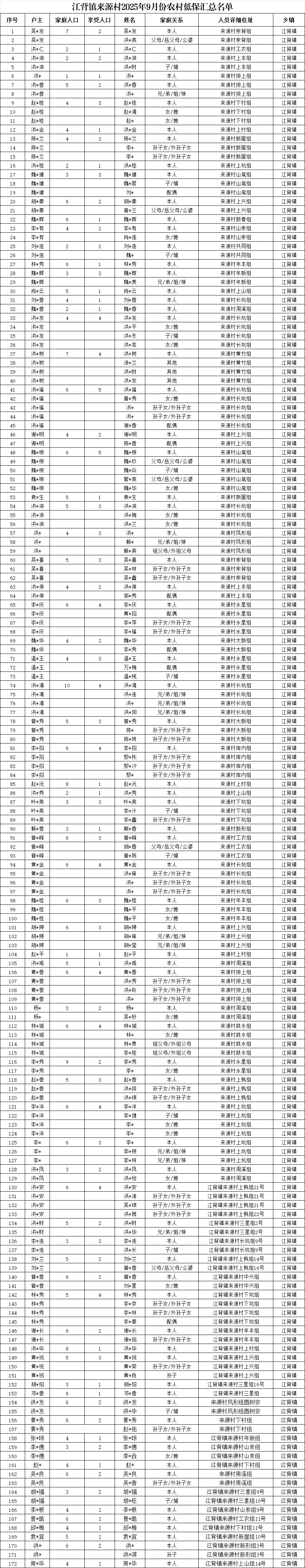 【社會救助】江背鎮來源村2025年9月份農村低保匯總名單