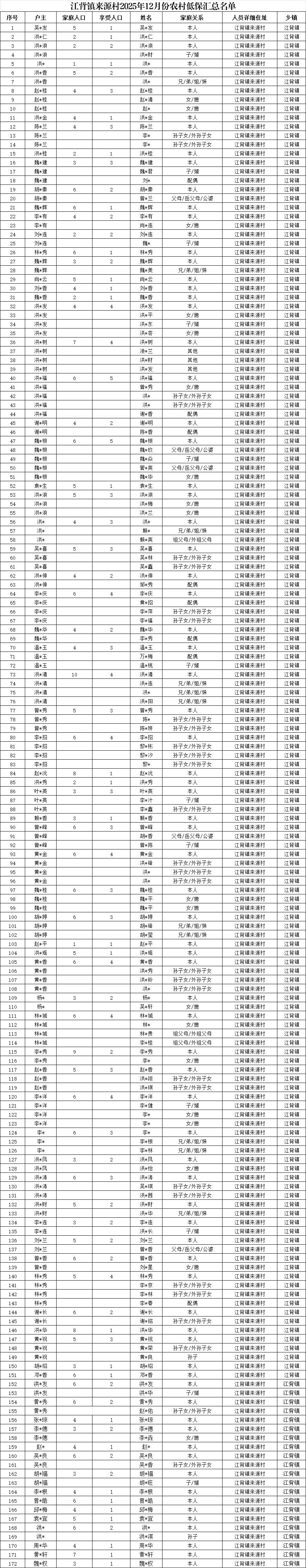 【社會救助】江背鎮來源村2025年12月份農村低保匯總名單