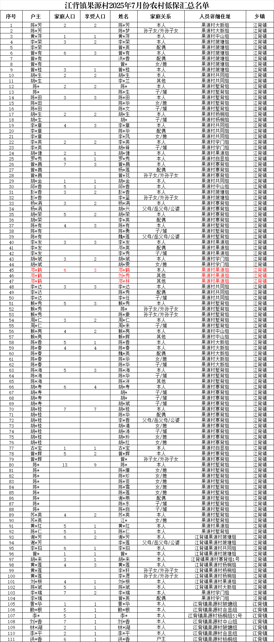 【社會救助】江背鎮果源村2025年7月份農村低保匯總名單