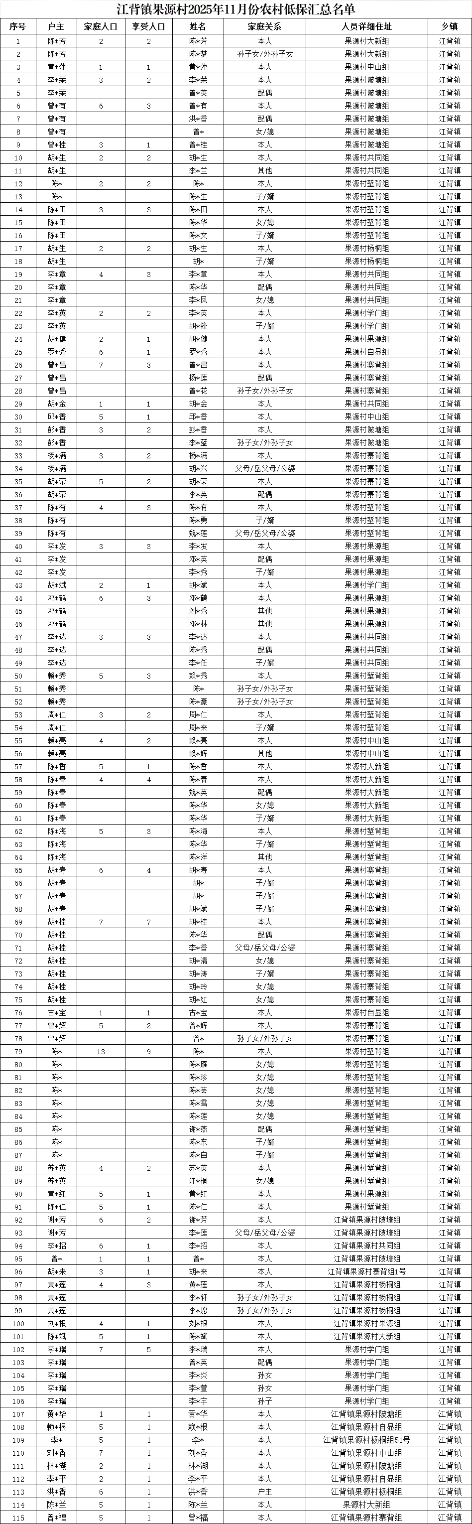 【社會救助】江背鎮果源村2025年11月份農村低保匯總名單