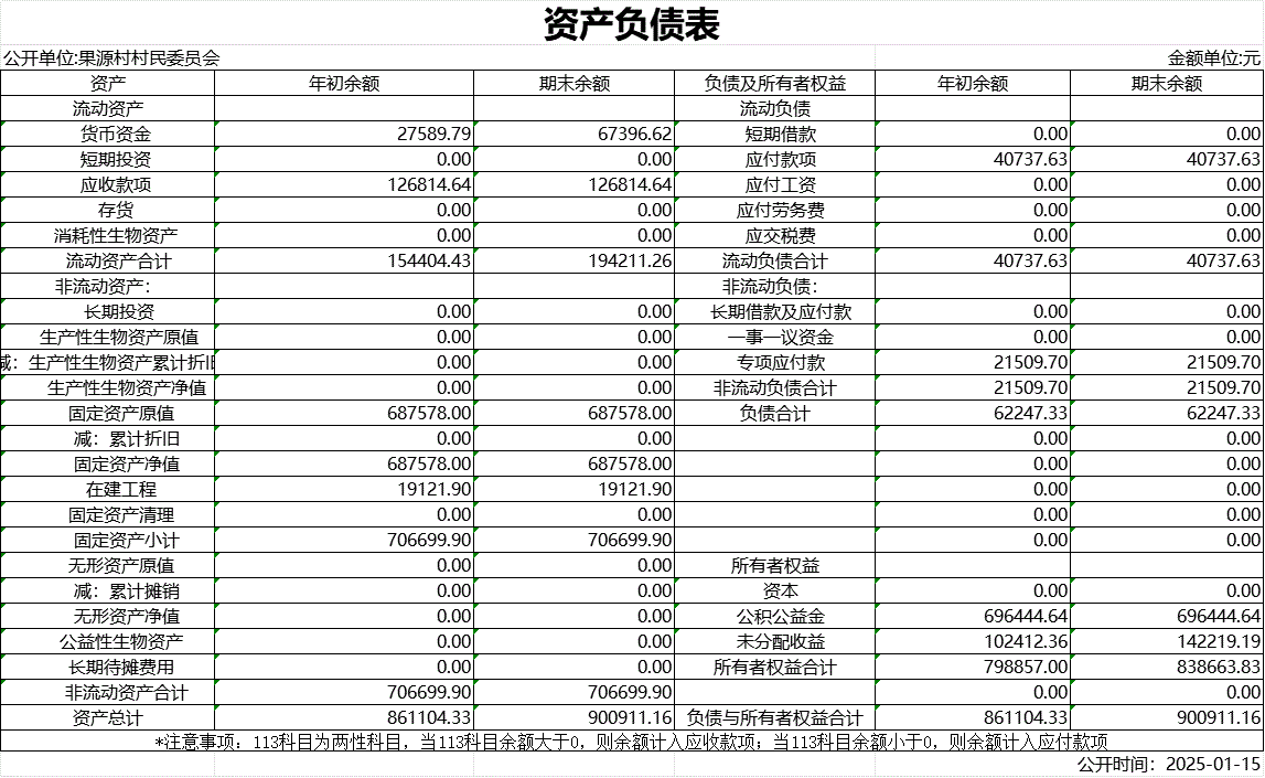 【財務收支】果源村2024年第四季度資產負債表公示