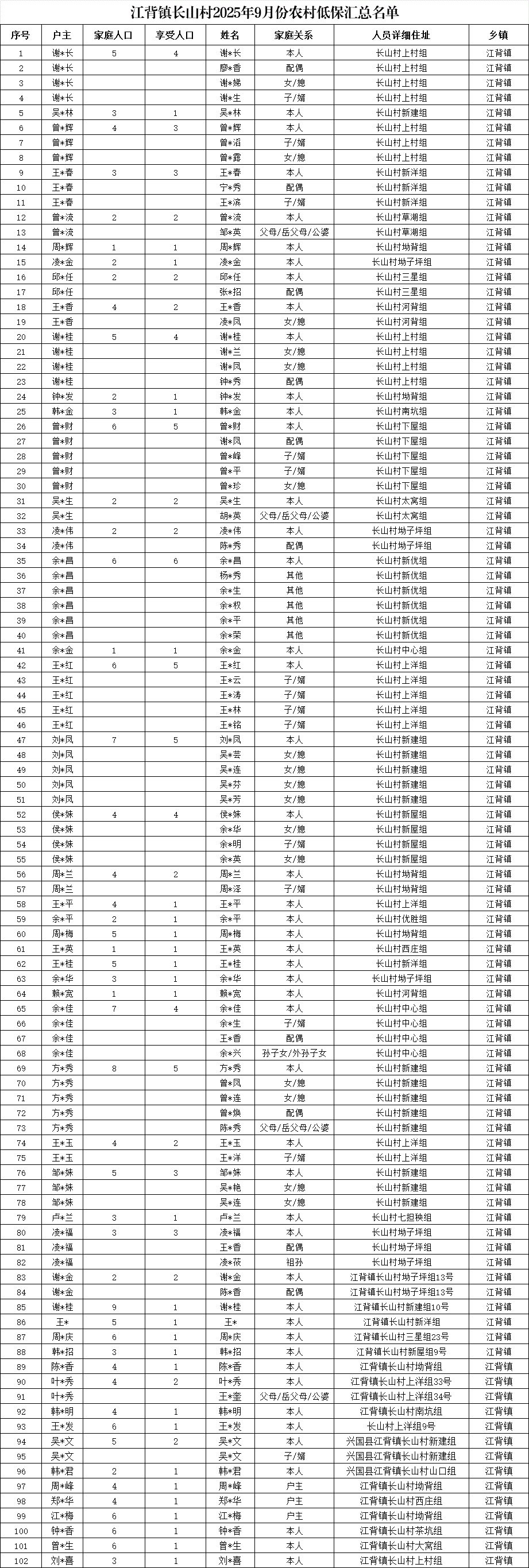 【社會救助】江背鎮(zhèn)長山村2025年9月份農(nóng)村低保匯總名單
