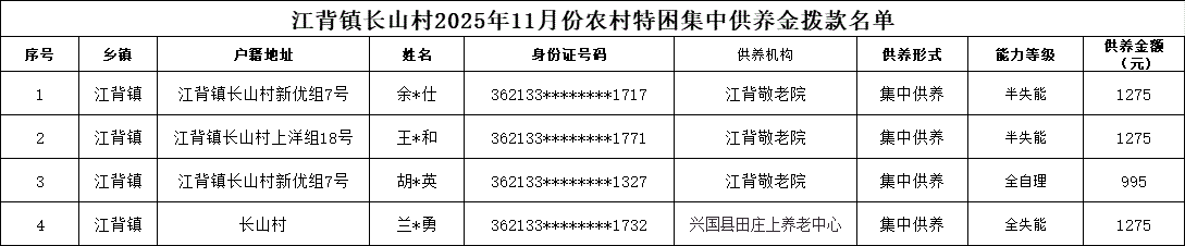【社會(huì)救助】江背鎮(zhèn)長(zhǎng)山村2025年11月份農(nóng)村特困集中供養(yǎng)金撥款名單