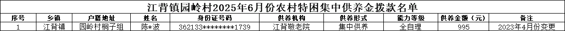 【社會救助】江背鎮(zhèn)園嶺村2025年6月份農(nóng)村特困集中供養(yǎng)金撥款名單