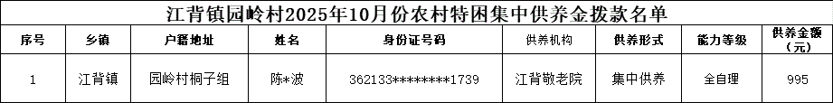 【社會(huì)救助】江背鎮(zhèn)園嶺村2025年10月份農(nóng)村特困集中供養(yǎng)金撥款名單
