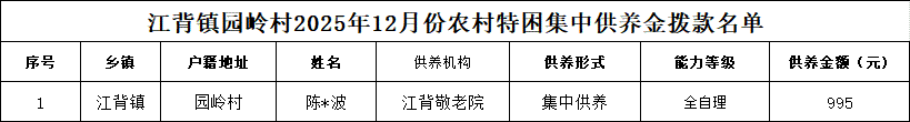【社會(huì)救助】江背鎮(zhèn)園嶺村2025年12月份農(nóng)村特困集中供養(yǎng)金撥款名單