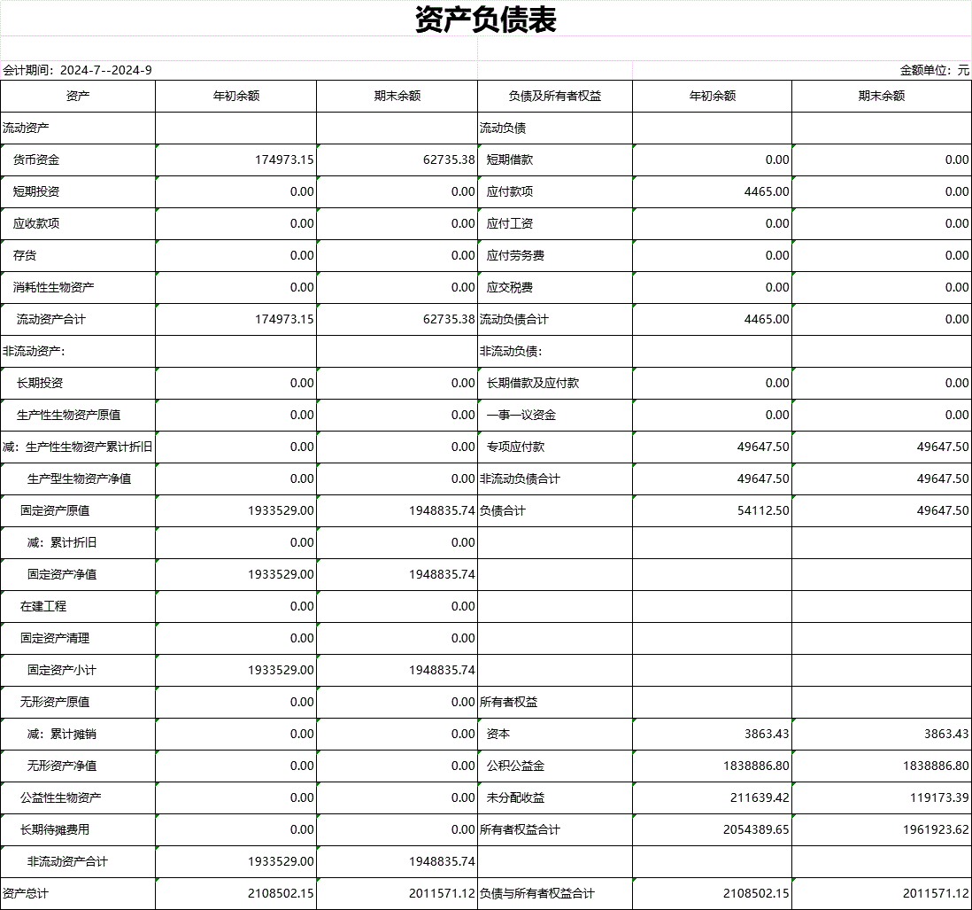 【財(cái)務(wù)收支】園嶺村2024年第三季度資產(chǎn)負(fù)債表公示