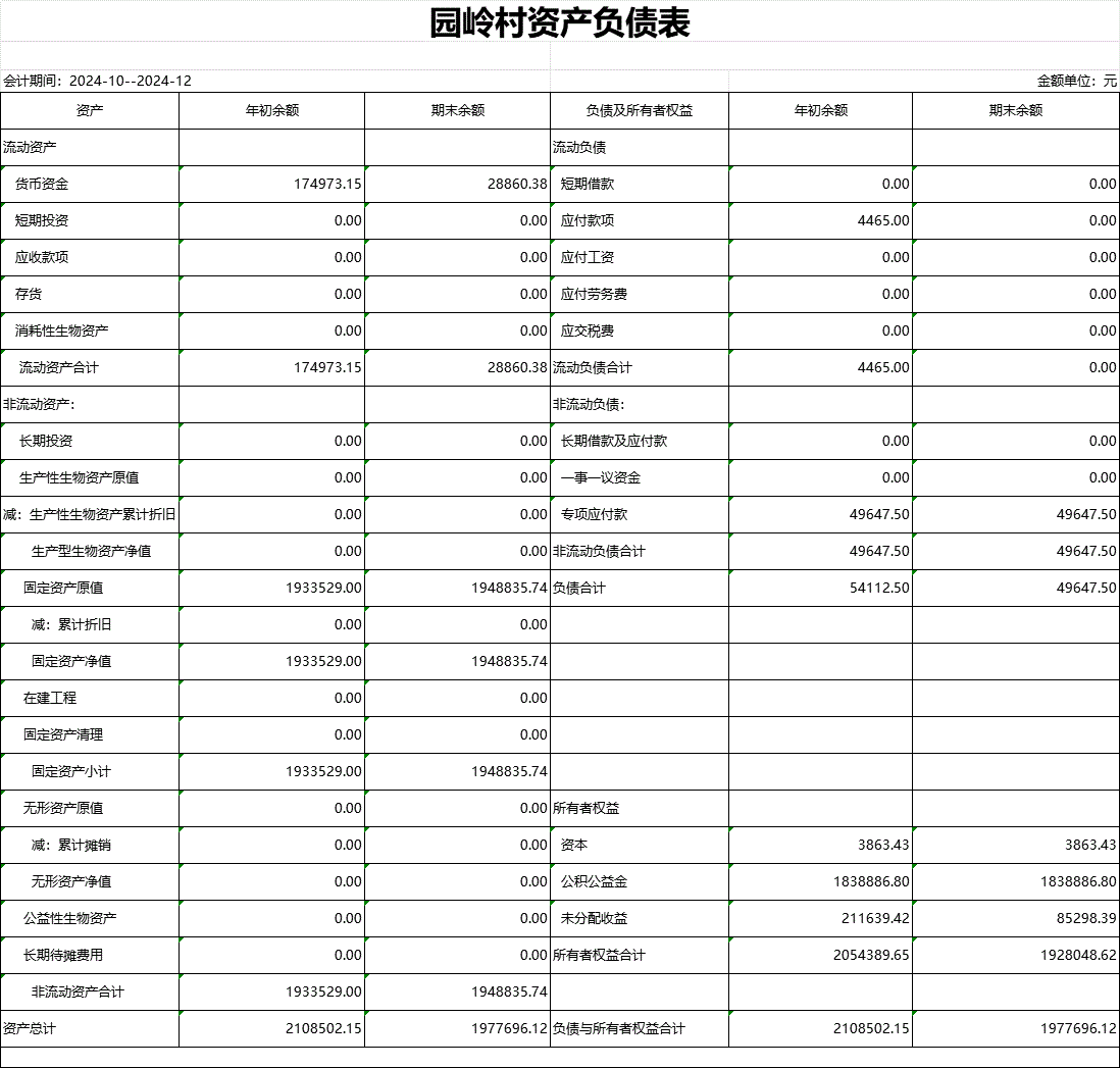 【財務收支】園嶺村2024年第四季度資產負債表公示