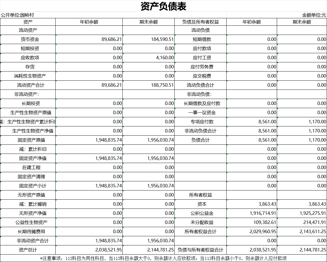 【財務(wù)收支】園嶺村2025年第四季度資產(chǎn)負債表公示
